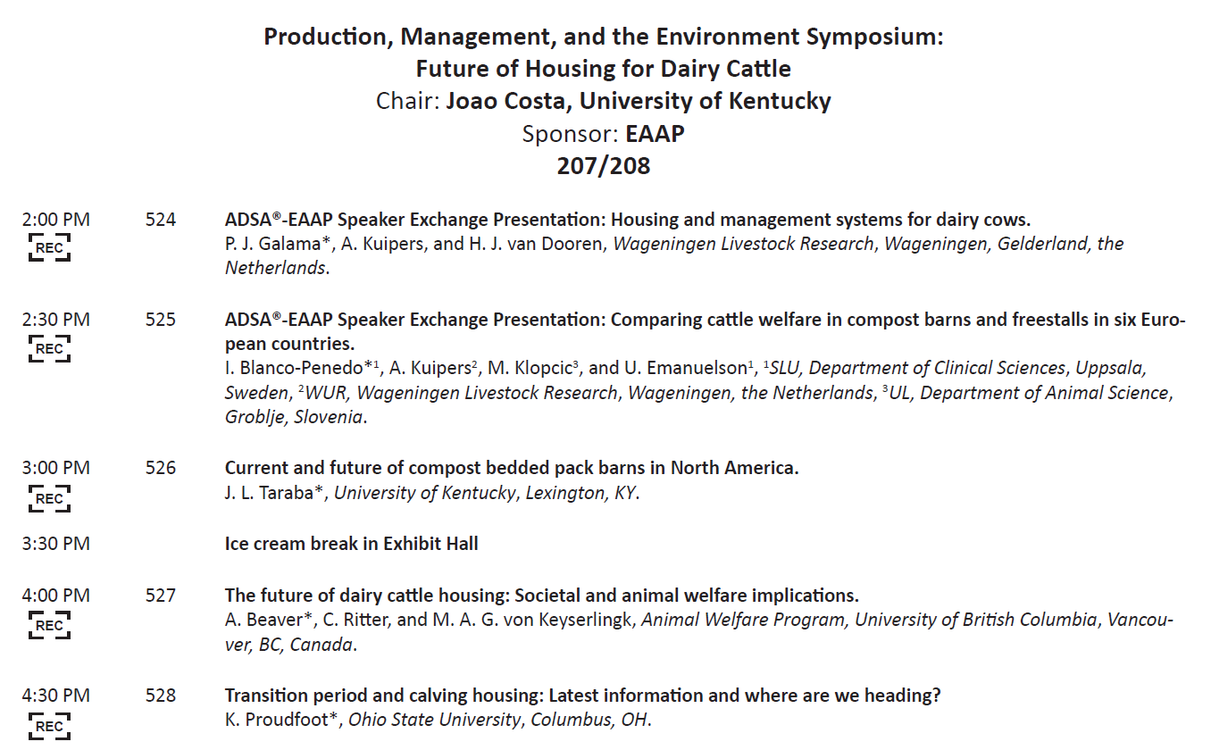 American Dairy Science congress seminar “Future of housing” in cooperation with EAAP, ADSA and the FreeWalk project.