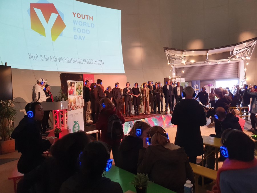 On October 16, the winners baked their burgers with chefs on the grounds of the World Food Center in Ede, during Youth World Food Day. Mirjam and Anke's Carrotcake vegan burger and Senna's Mister Lupini burger were offered to various administrators.