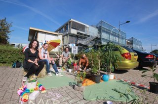 Merel Scheltema, studente ruimtelijke planning, richtte woensdag 21 september een parkje in op de parkeerplaats bij de ingang van Gaia/Lumen. Het was die dag de internationale PARK(ing) Day.