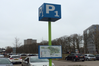 Bovendien zijn de parkeerterreinen direct bij de gebouwen vaak al vol als bezoekers arriveren. Daarom wordt nu verwezen naar de vier grotere parkeerterreinen (P1 t/m 4). Vanaf deze parkeerterreinen is vervolgens een goede bewegwijzering aangelegd die verwijst naar de gebouwen. Daarnaast zijn er plattegronden van de campus op alle parkeerterreinen, bij de ingangen van de campus en bij de bushaltes.