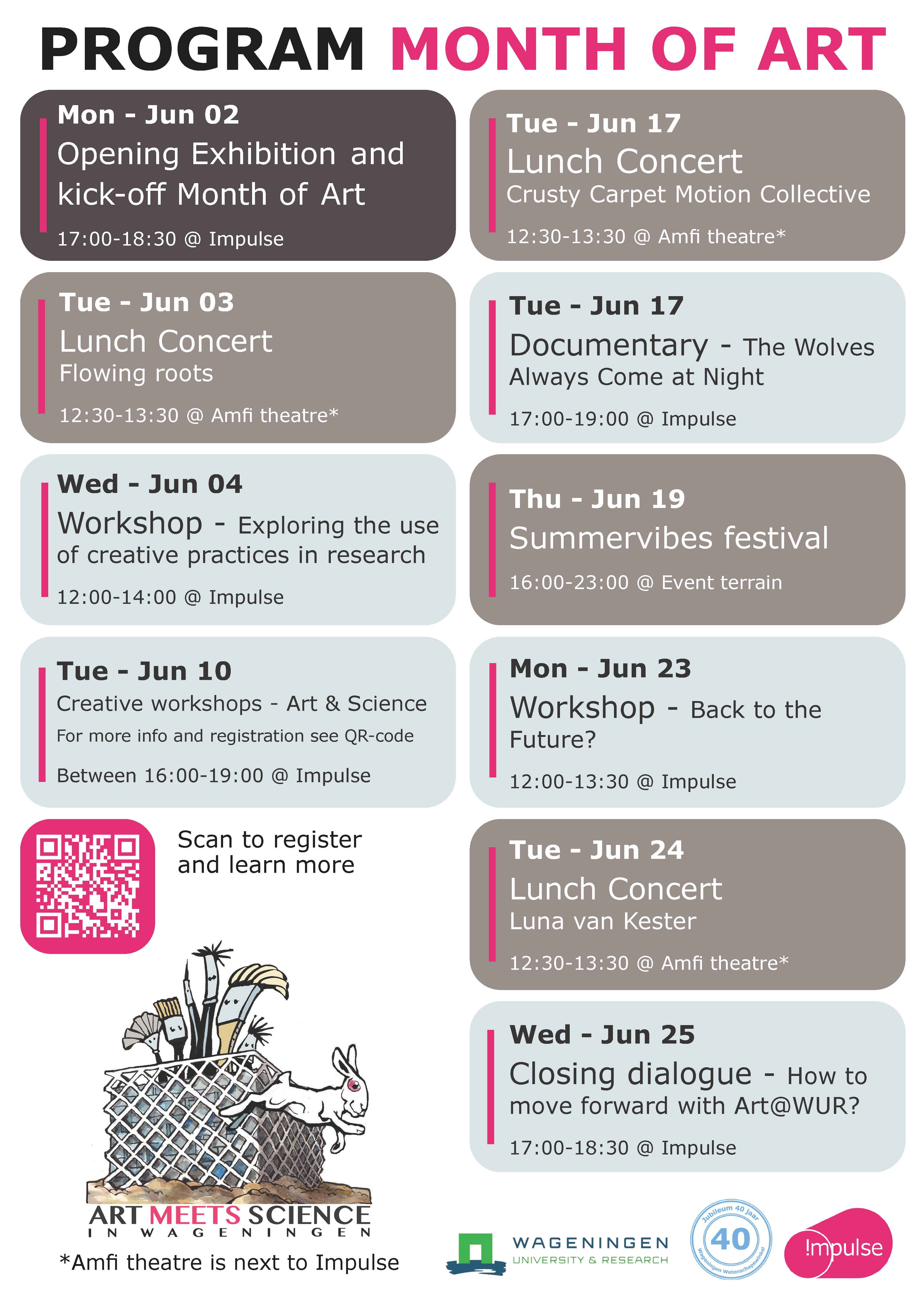Tijdens de Month of Art organiseren we op dinsdag 10 juni inspirerende workshops door kunstenaars van de tentoonstelling Art & Science. Ontdek hoe kunst en wetenschap elkaar versterken en ga zelf aan de slag onder begeleiding van de makers. Alle workshops starten in Impulse