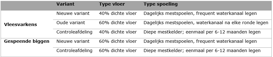 Tussen januari 2023 en februari 2024 heeft WLR de effectiviteit van de varianten van dagontmesting onderzocht op twee varkensbedrijven. Het doel was om methaan- en ammoniakemissies te reduceren door varianten van dagontmesting te vergelijken met traditionele systemen. Onderstaand overzicht toont de kenmerken van de onderzochte systemen.
