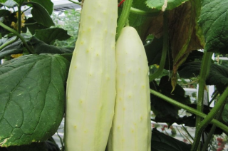 Edelweiss is een wit komkommer ras, waarbij het Duitse ‘weiss’ naar de kleur verwijst. Het ras werd net als Albaster Lange Witte en Aurea in broeibakken geteeld, onder platglas. Witte komkommer rassen hebben het voordeel dat ze lagere temperaturen kunnen verdragen dan de gele of groene typen. Bovendien worden ze minder snel aangetast door ziekten.