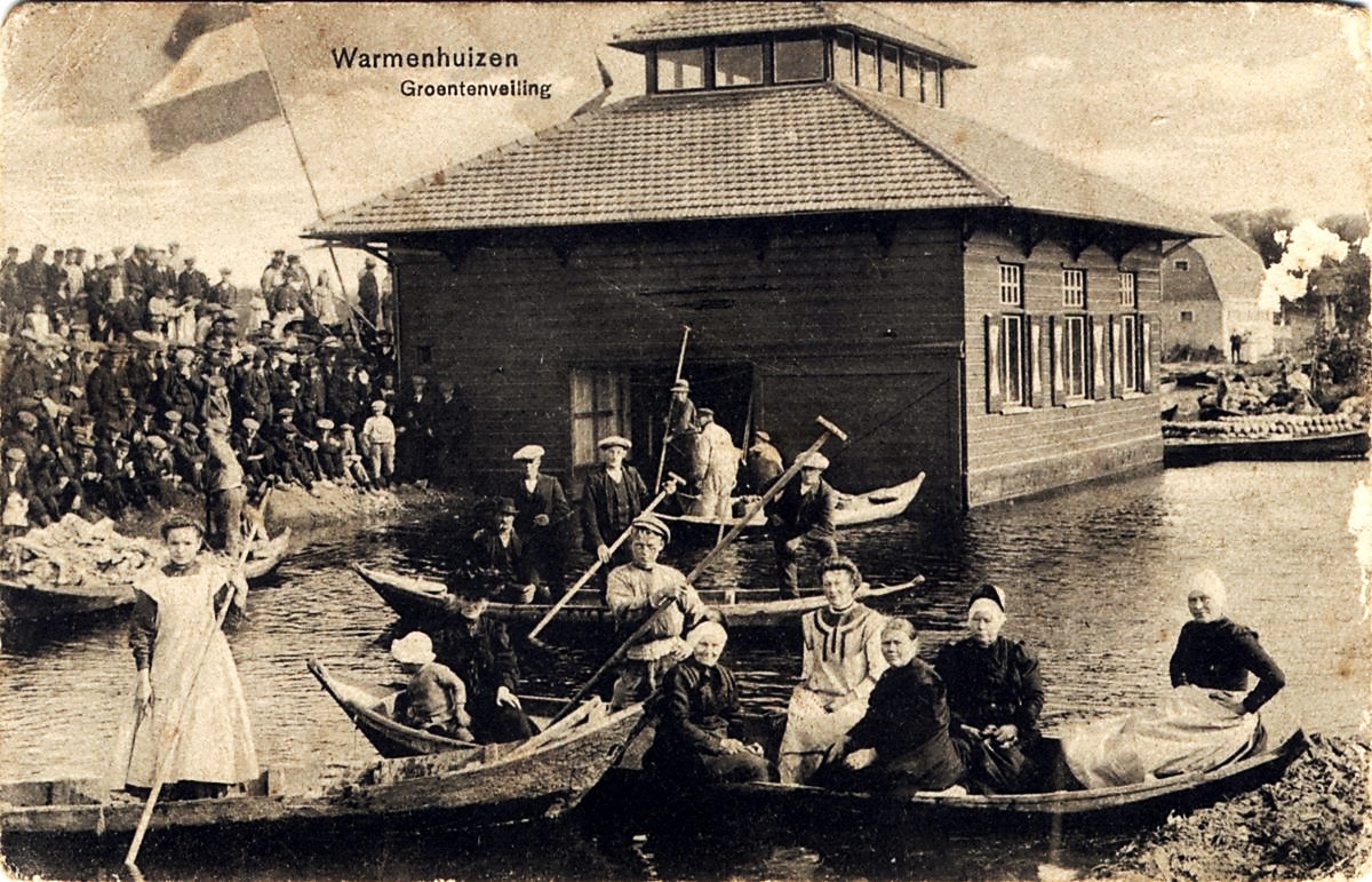 Via de Broekerveiling, opgericht in 1887, werden onder andere witte kolen zoals de Langedijker Bewaarwitte doorverkocht. Het veilingsgebouw stond op het water, op grote palen waardoor de tuinder met hun volgeladen schepen hier doorheen konden varen; een doorvaarveiling. In het naastgelegen dorp Warmenhuizen was er nog zo’n doorvaarveiling, zoals te zien op de onderstaande afbeelding.