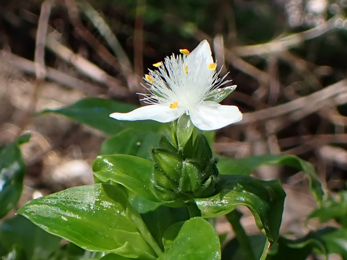 De bodembedekkende Vaderplant (Tradescantia fluminensis) wordt 30-100 cm hoog en heeft glanzende, donkergroene bladeren die ovaal tot lancetvormig zijn. De dunne scheuten kunnen zowel rechtop als hangend groeien. De plant vormt dichte matten van verticale bladdragende scheuten die groeien op horizontale, bladloze stengels. Deze stengels hechten zich aan de bodem met fijne wortels, die ook ontstaan bij knopen in de mat. Sommige varianten hebben bontgekleurde bladeren (wit of geel). De bloemen zijn klein (ongeveer 2 cm), wit en bestaan uit drie bloemblaadjes, drie groene kelkblaadjes en zes meeldraden.