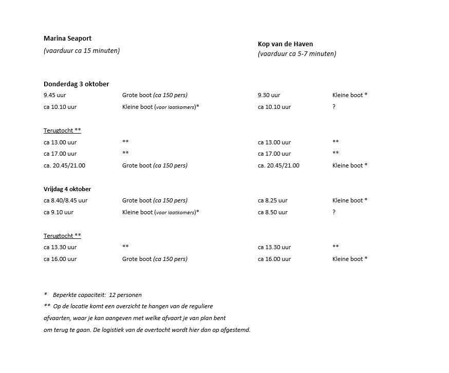 De Noordzeedagen vinden plaats op het Forteiland. Voor de overtochten per boot vind je hieronder het schema. Maak graag zoveel mogelijk gebruik van de ingeplande vertrektijden. Heb je nog extra vragen of heb je vertraging? Laat dit dan per sms weten aan Maarten de Jong 06-11088726 of b.g.g. Kees Borst 06-55716679 en/of stuur een mail naar Noordzeedagen2019@rws.nl.